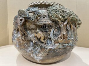 手捻りならではの凹凸が生み出す力強い立体感を湛えた陶器をお買取りさせていただきました。