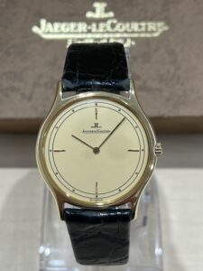 1833年創業のスイス屈指の高級時計ブランドであり、「グランド・メゾン」と称される自社一貫製造を貫く名門、ジャガールクルトのゴールド クォーツモデルマスター・ウルトラスリムをお買取りさせていただきました。